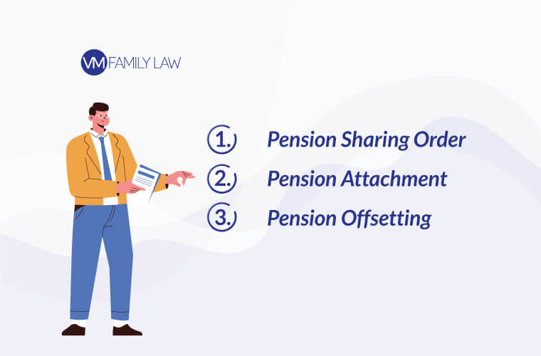 2. Pension Attachment – Also known as earmarking. The pension stays with the original owner, but the ex-spouse is entitled to part of the owner’s pension income or lump sum when the owner retires.